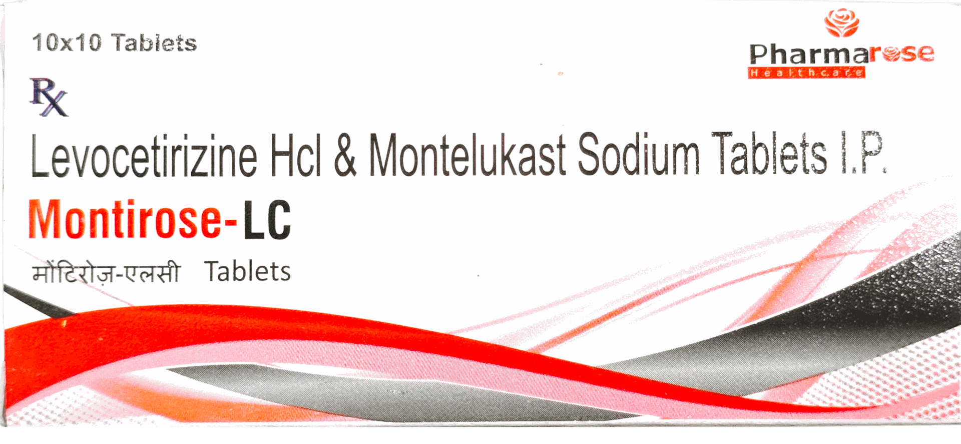 Montirose- LC Tablet is a combination medicine used in the treatment of allergic symptoms such as runny nose, stuffy nose, sneezing, itching, swelling, watery eyes and congestion or stuffiness. It also reduces inflammation in the airways and make breathing easier.